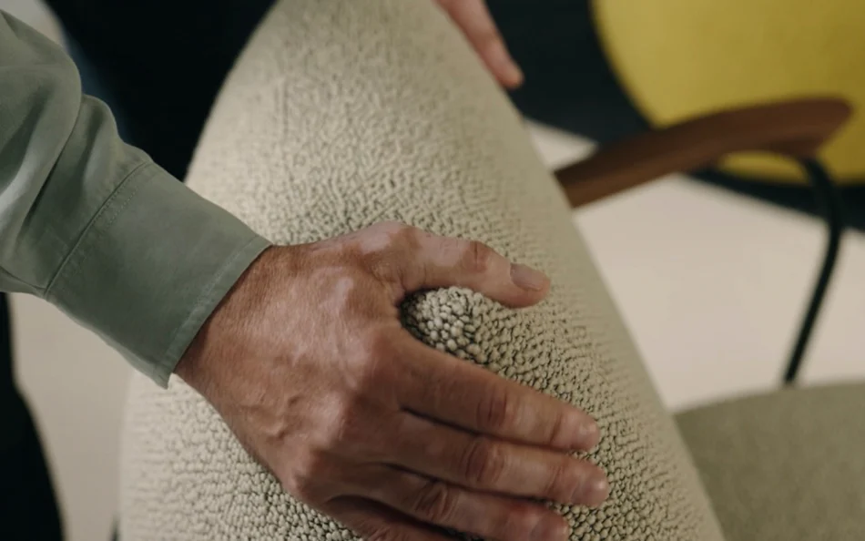 L’ensemble du nouveau canapé Buffa est une hypertrophie d’un oreiller. C'est une forme gonflée et distendue qui suggère un confort immédiat. Il s’agissait d’abandonner un style classique, élégant et anguleux, et de s’orienter nettement vers des lignes douces et arrondies afin de créer un canapé qui n’a pas besoin d’être apprivoisé ou apaisé par des coussins. Buffa est un objet très sculptural, contenant un élément de caprice incarné dans ses « cornes » de bouffon et ses courbes indulgentes, mais aussi un endroit par excellence pour se détendre et reprendre son souffle ; rond, tactile et luxueux.